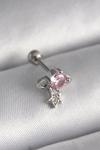 Butik 316L Çelik Gümüş Renk Pembe Kurdele Zirkon Taş Detay Tragus Piercing