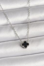 316L Çelik Gümüş Renk Siyah Yonca Model Kadın Kolye