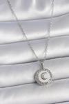 316L Çelik Gümüş Renk Zincir Beyaz Mineli Hilal İşlemeli Madalyon Model Kadın Kolye