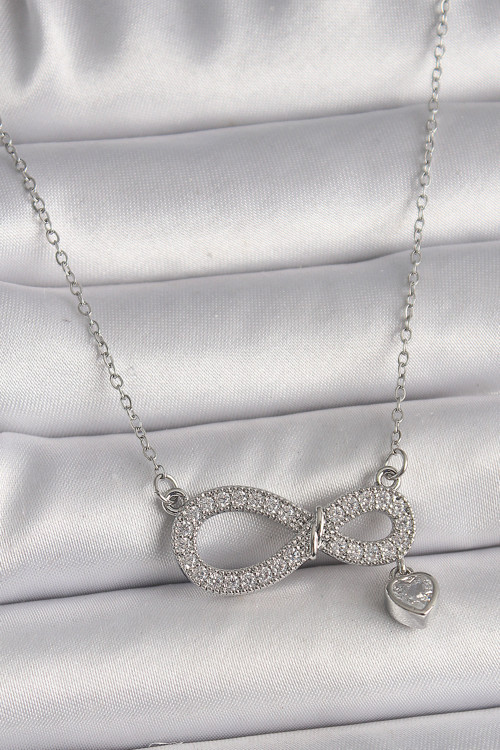 Skygo 316L Çelik Gümüş Renk Zincir Zirkon Taşlı Sonsuzluk Model Taşlı Kalp Detay Kadın Kolye - TJ-BKO9801
