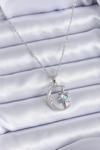 Zarif Kadın için Silver Çelik Zincir Mavi Mineli Ay Tip Tarot Kolye - Image 1
