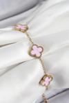 316L Çelik Pembe Sedef Yonca Model Gold Renk Kadın Bileklik
