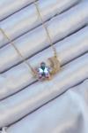 ÖyküMarketing 316L Çelik Zincir Altın Renk Ay Tasarımlı Renkli Zirkon Taşlı Çiçek Kolye - TJ-BKO9135