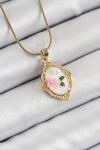 316L Çelik Zincir Beyaz Sanatsal Portre İnci Detaylı Gül Figürlü Model Gold Renk Kadın Kolye