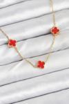 Butik 316L Çelik Zincir Gold Renk Kırmızı Baby Boy Yonca Kadın Kolye