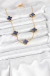 Tahtakale Toptancı 316L Çelik Zincir Gold Renk Lacivert Yonca Kadın Kolye