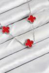 316L Çelik Zincir Gümüş Kırmızı Renk Yonca Kadın Kolye