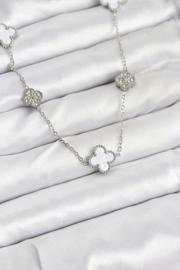 Tahtakale Toptancı 316L Çelik Zincir Gümüş Renk Beyaz ve Zirkon Taşlı Yonca Kadın Kolye