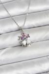 Mevafa 925 Ayar Gümüş Kalp Manolya Çiçeği Kelebek Kadın Kolye