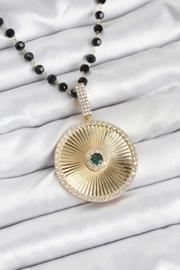 316L Çelik Gümüş Renk Minimal Yeşil Mineli Yonca Kolye - Image 1
