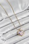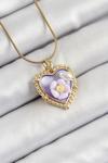Skygo 316L Çelik Zincir Mor Sanatsal Portre İnci Detaylı Papatya Figürlü Kalp Model Gold Renk Kadın Kolye