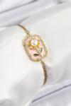 Butik 316L Çelik Zincir Pembe Mineli Sanatsal Portre İnci Detaylı Papatya Model Gold Renk Kadın Bileklik