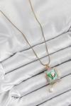 Skygo 316L Çelik Zincir Turkuaz Sanatsal Portre Sallantılı İnci Detaylı Lale Model Gold Renk Kadın Kolye