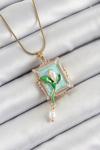 Stil Love 316L Çelik Zincir Turkuaz Sanatsal Portre Sallantılı İnci Detaylı Lale Model Gold Renk Kadın Kolye SL12177