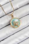Butik 316L Çelik Zincir Zirkon Taşlı Turkuaz Sanatsal Portre İnci Detaylı Kelebek Model Gold Renk Kadın Ko