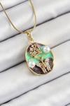 Skygo 316L Çelik Zincir Zirkon Taşlı Yeşil Mor Sanatsal Portre İnci Detaylı Ağaç Ve Kelebek Figürlü Model