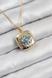 316L Çelik Zirkon Taşlı Açılabilr Kapaklı Göz Model Gold Renk Kadın Kolye
