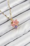 316L Çelik Zirkon Taşlı Arı Detaylı Pembe Çiçek Model Gold Renk Kadın Kolye