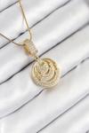 316L Çelik Zirkon Taşlı Çember Model Gold Renk Kadın Kolye