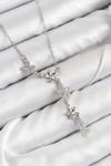 Butik markasının zarif tasarımı, şıklığı ve zarafeti bir araya getiriyor. Bu kolye, kadınlar için özel olarak tasarlanmıştır ve gümüş rengiyle dikkat çeker.