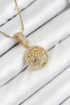 316L Çelik Zirkon Taşlı Hayat Ağacı Model Gold Renk Kadın Kolye