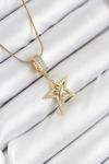 316L Çelik Zirkon Taşlı Yıldız Model Gold Renk Kadın Kolye