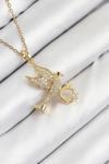 316L Çelik Zirkon Taşlı Yüzüklü Kuş Model Gold Renk Kadın Kolye