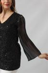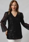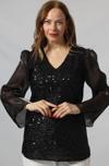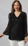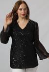 3251SİYAH PULPAYET ORGANZE KOLLU DANTEL KOMBİN BÜYÜK BEDEN ŞIK BLUZ