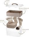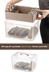 Şeffaf gövde ve kapak tasarımı sayesinde tüm parçalar bir arada saklanabilir, taşıma kolaylığı sağlar.