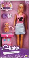 Set içerisinde; 1 adet Alisha bebek, 1 adet köpek, muayene tezgahı, mama kabı, kemik ve çeşitli veteriner aksesuarları yer almaktadır.
