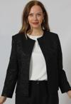 - 3398 KABARTMA DESENLİ SIFIR YAKA BÜYÜK BEDEN BLAZER CEKET