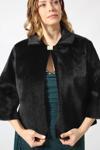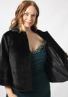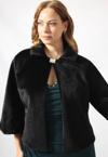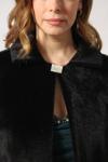 3399 SUNİ TAY TÜYÜ YAKASI BROŞLU KADIN BÜYÜK BEDEN SİYAH ETOL KÜRK