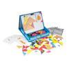49 parça tangram puzzle parçası ile çocuklar birçok şekli manyetik tahta üzerinde yapabilecek ve silinebilen yazı kalemi sayesinde hangi şekli yaptıysa onun ismini yazabilecek.