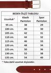 - %100 hakiki deri materyal bileşeni ile üretilmiş, uzun ömürlü ve dayanıklı kullanım sunar; - Klasik tasarımıyla zamansız bir şıklık ve tarz sahibi görünüm sağlar; - 3.5 cm genişliğindeki geniş tokası, rahat bir kullanım için idealdir ve kolayca takılıp çıkarılabilir; - Kahverengi rengi ve dikiş deseniyle her türlü kıyafetle uyum sağlayarak stilinizi tamamlar;