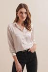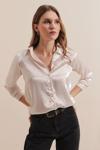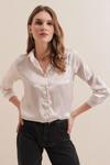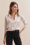 3964 Hafif Dökümlü Saten Gömlek - Krem