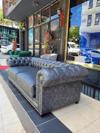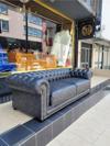 3A MOBİLYA ALASKA CHESTERFİELD FIRINLANMIŞ KAYIN KERESTE AHŞAP GÖVDE 32 DNS GRİ YARI YUMUŞAK SÜNGER A1 KALİTE İTHAL SİYAH ESKİTME DERİ 20 CM OEXTRA SOFT OTURMA MİNDERİ RAHAT OTURUM ALANI KENDİ DERİSİNDEN KAPİTONE DÜĞMELERİ SİYAH LAKE AHŞAP AYAKLAR EL KAPİTONESİ TAMAMEN ÖZEL EL YAPIMI İŞÇİLİĞİ ÖLÇÜLER 220 CM