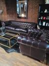 120x230 cm ölçülere sahip olan üçlü koltuk, deri kumaşıyla dinamik ve ağır bir görünüme sahiptir. Ofis ve klasik görünümlü salonlarda tercih edilebilir.