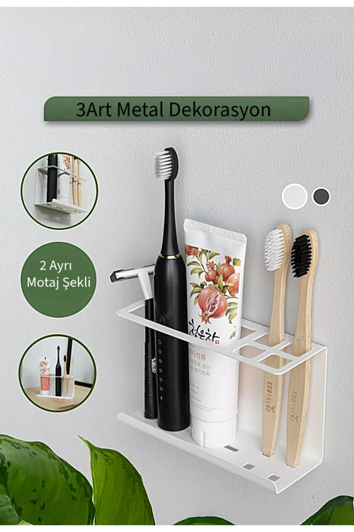 3Art Metal Metal Diş Fırçalık – Çift Taraflı Bant İle Montaj & Tezgah Üstü Kullanım – Şık Ve Dayanıklı Tasarım