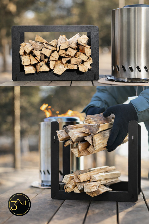 - Modern tasarımıyla dikkat çeken metal odunluk, şömine ve soba yanı için ideal bir depolama çözümü sunar.