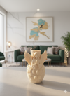 Bu eşsiz "Kış Meleği" vazosu ile kışın nazik zarafetini yaşam alanınıza taşıyın. Bu parça, meleklerin huzur dolu sembolünü, çam kozalakları ve yapraklar gibi karmaşık mevsimsel motiflerle güzel bir şekilde birleştirir ve tamamı gelişmiş 3D baskı teknolojisi kullanılarak oluşturulmuştur. Bu, bir vazodan çok daha fazlası; huzurlu, modern bir heykeldir.