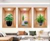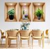 3d Çiçek Vazo Duvar Sticker 3 Lü Set Kahverengi Fon