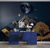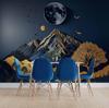 3D Kabartma Görünmlü Dağ ve Ay Temalı Duvar Kağıdı Baskı