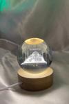 3D Led Işık Gecelambası Cam Küre Tek Renk Günışığı Ahşap Ayasofya Cami Gece Lambası7 cm