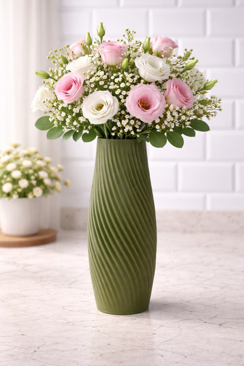 3D tasarım ile üretilmiş, modern ve minimal çizgilere sahip dekoratif plastik vazo.