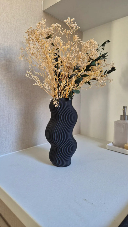 3D Baskı Dalgalı Tasarım Dekoratif Vazo – Modern Masa Üstü Dekor 18cm boyunda sert plastik
