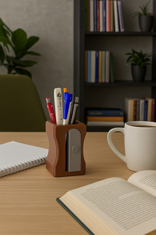 Çalışma masanızda şıklık ve düzeni bir arada sunan kalemtıraş görünümlü masaüstü kalemlik, kalemler, not kağıtları ve küçük ofis aksesuarlarınızı düzenli tutmanızı sağlar.