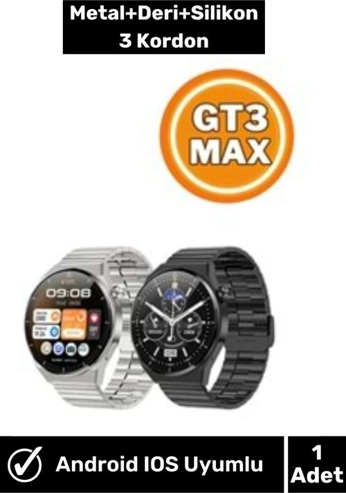3GT MAX Smart Watch 1.45 inç P Design Siri Nfc Bluetooth Antrasit Siyah Akıllı Saat 3x Kordon