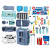 Set içerisinde; masa, ateş ölçer, cımbız, şırınga, ilaç kutusu, yara bandı, stetoskop, gözlük gibi çeşitli aksesuarlar bulunmaktadır.