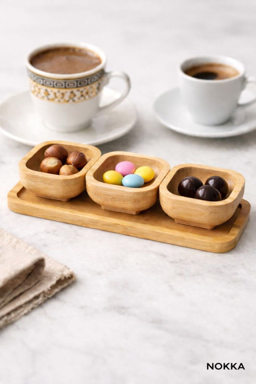 - Çin menşeli, yüksek kaliteli bambu materyalden üretilmiş olup, 6 cm kare formda tasarlanmıştır.; - 4 parça set halinde sunulan bu ürün, çerezlerinizi şık bir şekilde servis etmenize olanak tanır.; - Bambu malzeme kullanımı sayesinde doğal ve çevre dostu bir seçenek sunar.;