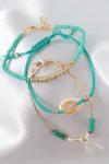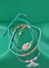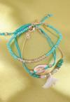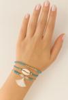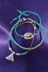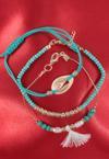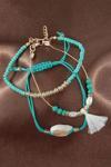 Keeba 3lü deniz kabuklu incili püsküllü asansörlü lastikli turkuaz ip bileklik. Kadın ip bileklik halhal